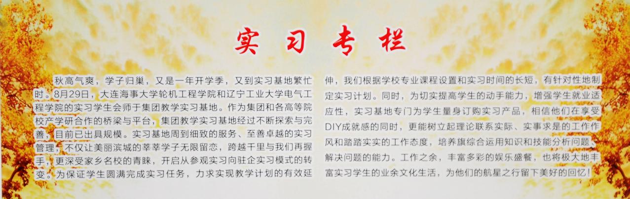 9月30號(hào)上午,我們一行人忘記了昨日的舟車勞頓,匆匆吃過食堂精心準(zhǔn)備的早點(diǎn),迫不及待得想仔細(xì)觀察這個(gè)我們即將實(shí)習(xí)兩個(gè)月的地方--錦州航星集團(tuán)。航星集團(tuán)坐落于遼西中心美麗的濱海城市錦州,是錦州市裝備制造業(yè)的龍頭企業(yè),不僅著眼于海、井、陸、空、天五大市場立體化發(fā)展,而且瞄準(zhǔn)全省船舶配套業(yè)領(lǐng)軍企業(yè)的目標(biāo)奮力前行。能在這樣一個(gè)集團(tuán)實(shí)習(xí)讓我感到非常榮幸,我們一定會(huì)自覺遵守法律、法規(guī)及實(shí)習(xí)基地的各項(xiàng)管理規(guī)定,做遵紀(jì)守法的實(shí)習(xí)生,在實(shí)習(xí)中積極主動(dòng),態(tài)度認(rèn)真,服從實(shí)習(xí)指導(dǎo)老師及實(shí)習(xí)部門的管理。相信我們未來兩個(gè)月實(shí)習(xí)生活會(huì)更加精彩,衷心祝愿航星集團(tuán)鵬程萬里、蒸蒸日上。